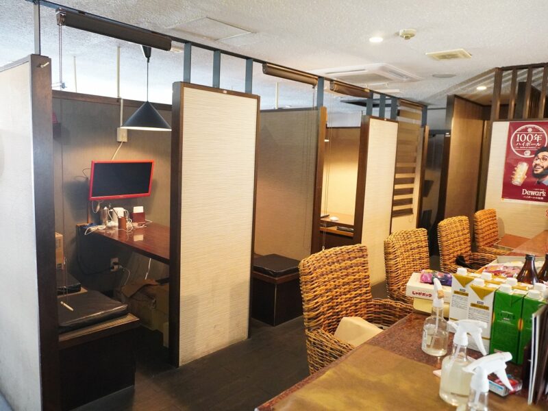 店内は居酒屋・ビストロとして営業されていた内装が残っており、